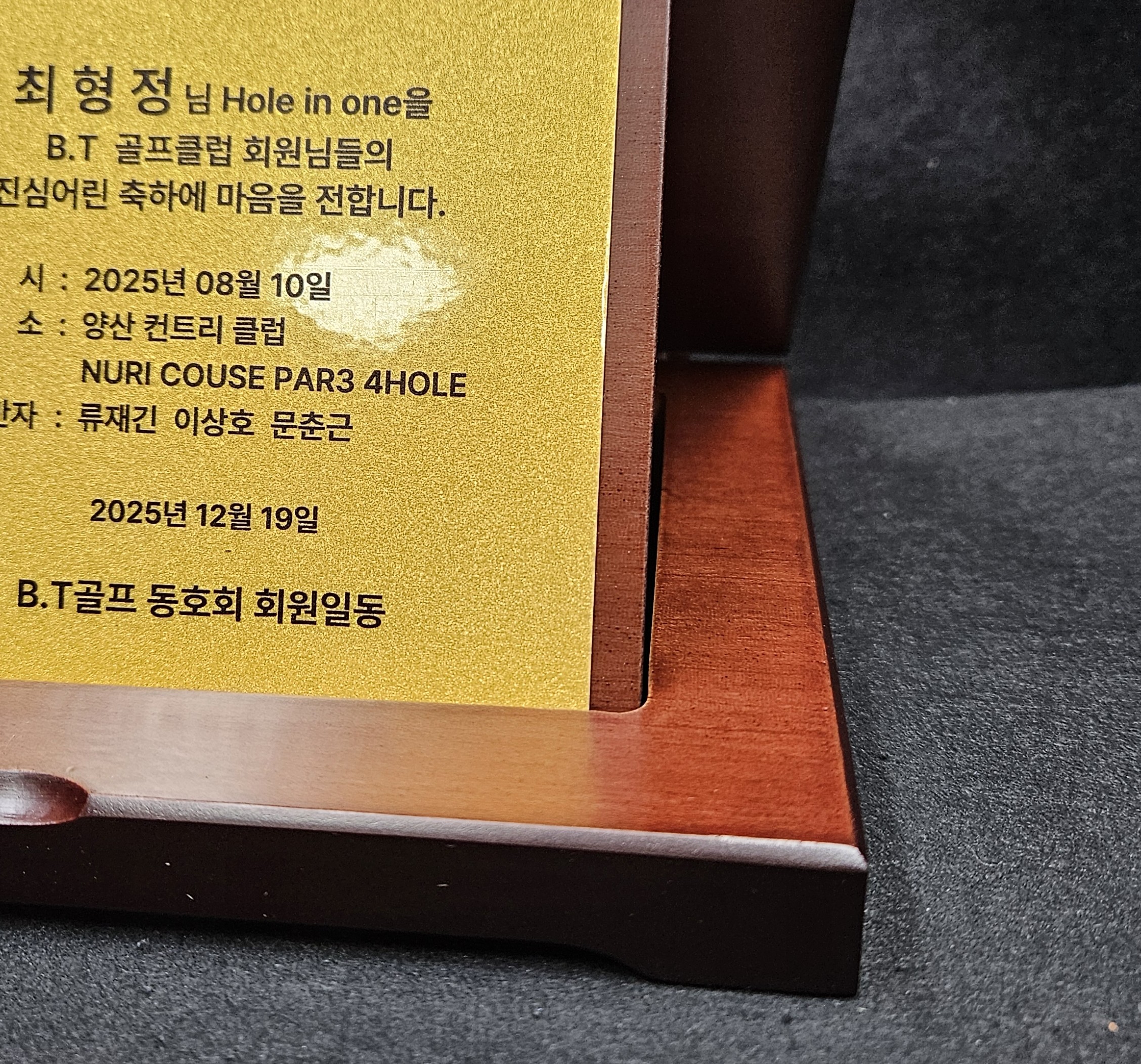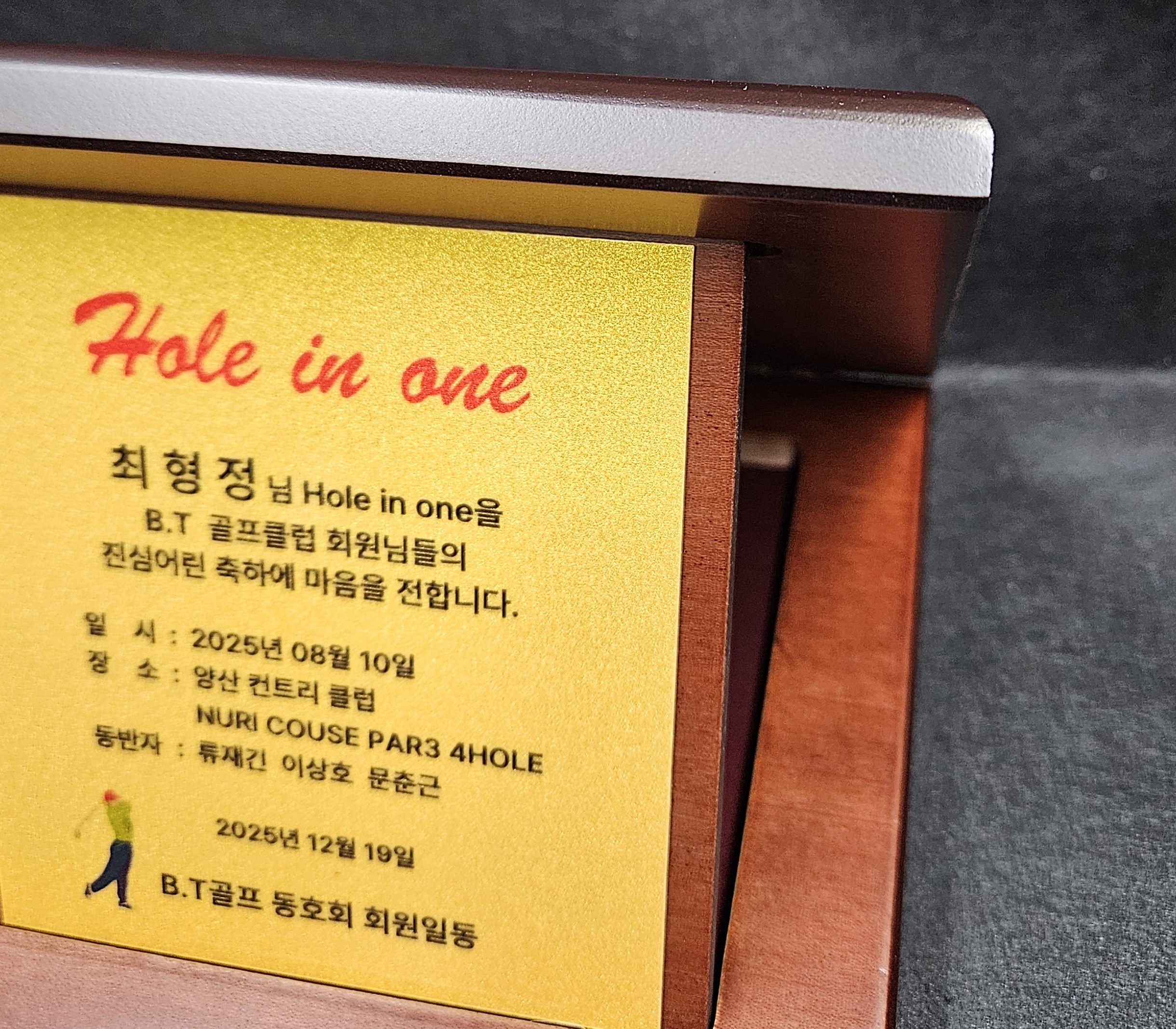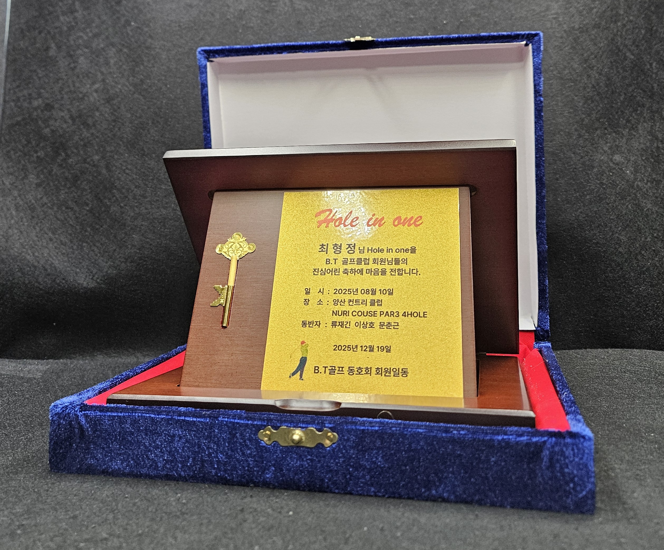 해당제품은 골프클럽에 주문하신 홀인원상패, 순금열쇠상패 입니다.